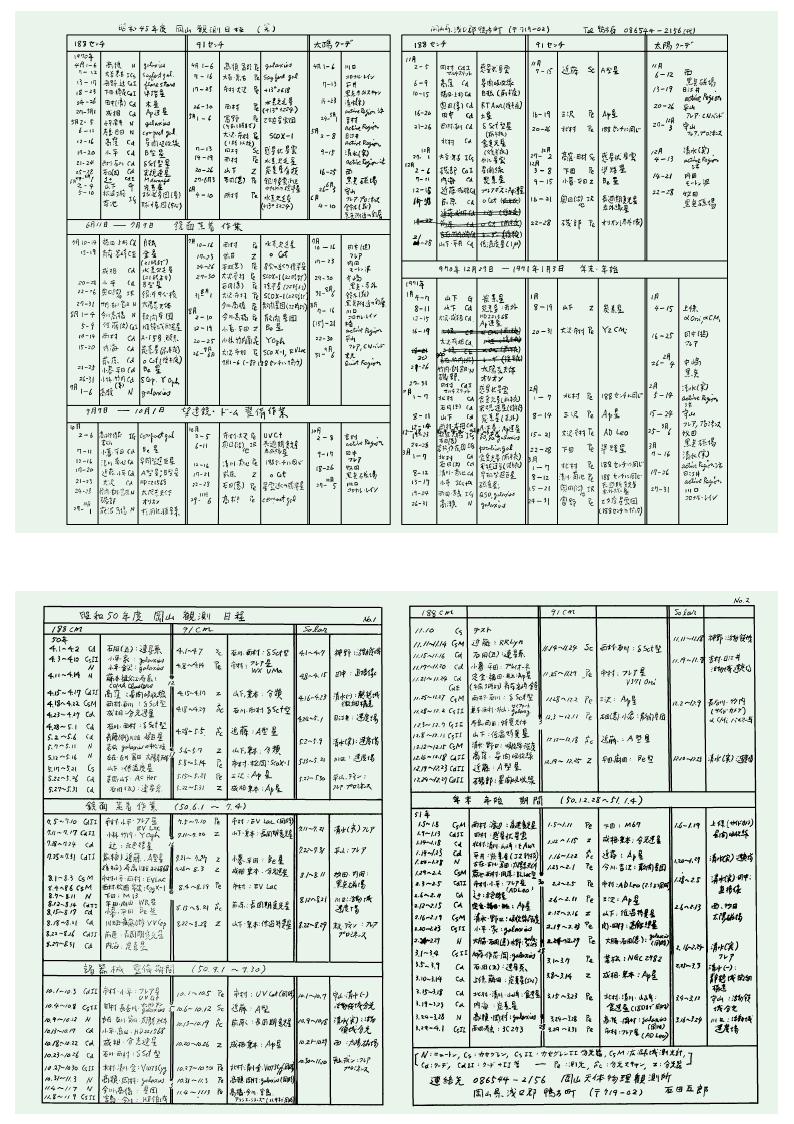 初期の頃は観測題目や対象天体の記載が見