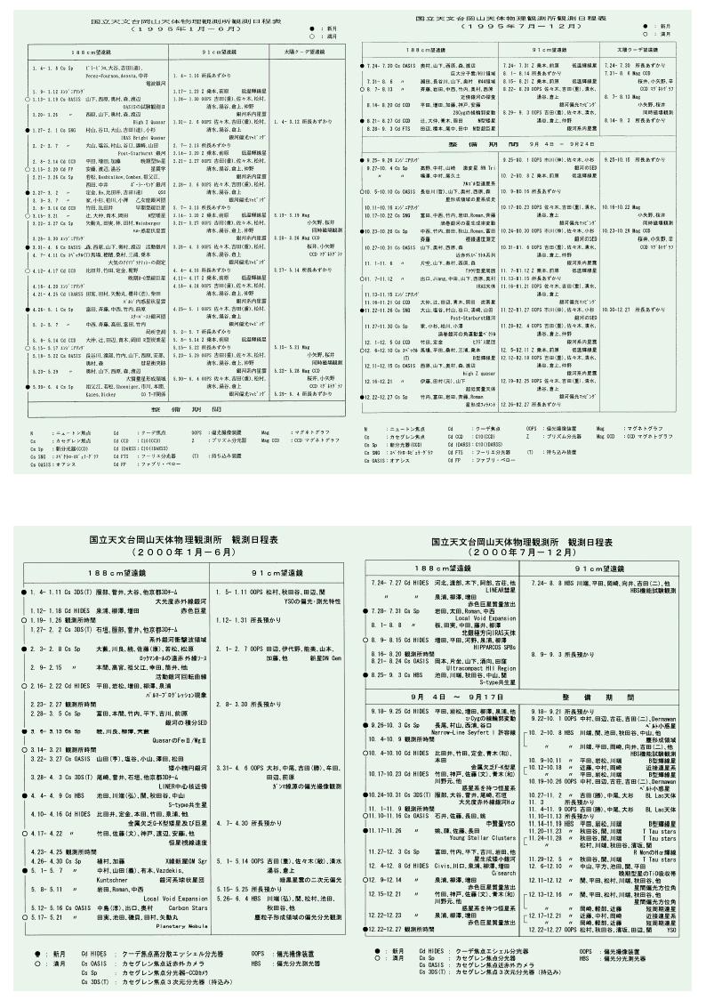 観測日程表(抜粋)