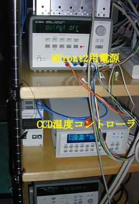真空度や温度は、CCD温度コントローラ(LakeShore)のtempA,tempB,およびヒーター出力(heat)の値で判断します。これらの値は、通常、obs74-1のGUI画面内に表示されています。温度表示が+137K〜139Kの間にない場合やheatの値が5以下の場合には所員までご連絡ください。また、この温度コントローラは東側の扉からクーデ室外部屋に入ったところすぐにあるラックの上に載っているので、本体の表示で直接確かめることもできます(heat出力値が5%以上であることを確認してください)。
